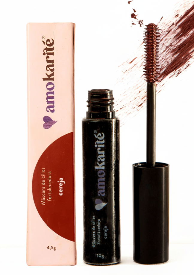 A Máscara de Cílios Fortalecedora, da AmoKarité, é vegana e rica em ativos vegetais, sendo livre de corantes sintéticos, petrolatos e metais pesados. Sua tonalidade é derivada de extratos botânicos e óxidos de ferro, boas opções para colorir peles alérgicas e sensíveis sem toxidade. A cor Cereja destaca o olhar com sofisticação e ousadia, sobretudo de quem tem olhos castanhos e verdes.