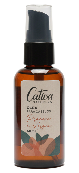 O Óleo para Cabelos de Pracaxi e Argan, da Cativa Natureza, tem rica combinação dos óleos de Argan e Pracaxi que em conjunto possuem vitaminas A, D e E. Proporcionam brilho, maciez e sedosidade com efeito antioxidante, regenerativo e proteção aos fios sendo uma excelente ação nos cabelos com químicas e danificados. Repara pontas duplas e é indicado para todos os tipos de cabelo, pois protege os fios contra a umidade, já que possui propriedades hidrofóbicas, ou seja repele a água. Pode ser usado diariamente. Protege os fios contra o ressecamento e serve como finalizador após o uso da escova, secador ou chapinha contribuindo para eliminar o frizz. O Óleo de Pracaxi é rico em ácidos graxos que ajudam a reconstruir os fios e fechar as cutículas, proporcionando um efeito de cauterização, hidratando os cabelos, diminuindo o volume, frizz e ainda dá brilho. Já o Óleo de Argan é rico em ácidos graxos que restauram a fibra capilar, nutre e dá brilho aos fios, possui ainda tocoferóis, polifenóis, ômega 6 e 9, carotenos, esteróis e esqualeno. E o Óleo de Buriti fortalece o fio, evita quebra e pontas duplas, dá brilho e maciez.