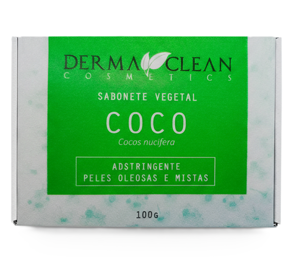 O Sabonete Vegetal de Coco, da Derma Clean, é vegano e livre de sulfatos, parabenos e petrolatos. Ele carrega tensoativos de limpeza extraídos do Óleo de Palma, que permitem a higienização da pele de forma eficiente e delicada, preservando seu manto hidrolipídico natural. Seu ingrediente-chave é o Óleo de Coco Nucifera, altamente nutritivo, emoliente, bactericida e antifúngico, reduzindo o ressecamento e atuando no tratamento de afecções e inflamações de todos os tipos de pele, como coceiras, alergias, psoríase e acne.