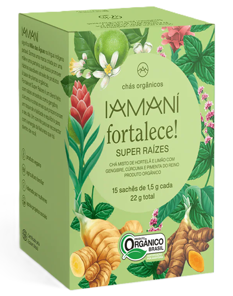 O Chá Misto Fortalece!, da Iamaní, é 100% natural, orgânico e vegano, sem glúten, sem lactose, zero açúcar e livre de aromas sintéticos e agrotóxicos. Trata-se de um blend de ervas harmonizadas com a refrescância das folhas de Hortelã, as notas cítricas das cascas de Limão, o toque terroso da Cúrcuma e a leve picância do Gengibre e da Pimenta Preta.