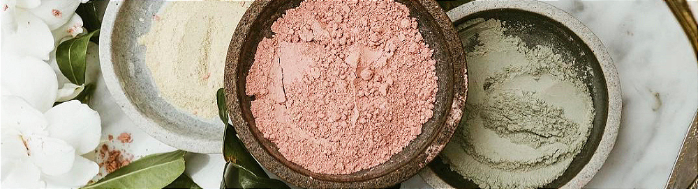 - Argila Branca = seu grande feito a médio e longo prazo é suavizar a cútis e clarear manchinhas de sol, gravidez ou idade, aumentando a oxigenação das áreas congestionadas. Combina com óleos essenciais de Pinho, que desobstrui vasos, melhorando a drenagem linfática, e de Palmarosa, que atua na síntese da melanina.