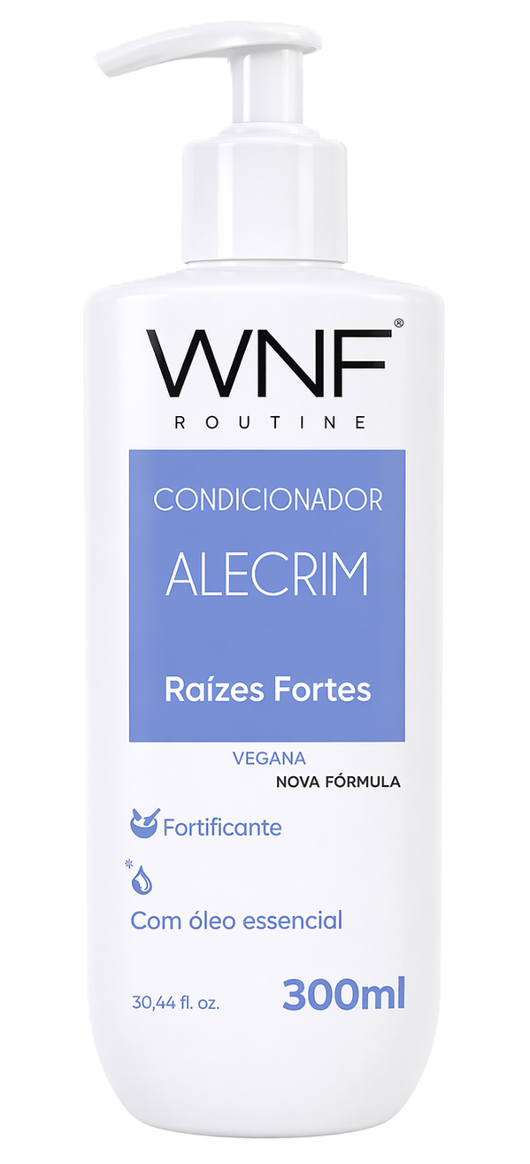 O Condicionador Fortificante, da WNF Routine, é vegano e rico em ativos botânicos, sendo livre de silicones, liberadores de formaldeído e óleo mineral. Ele é indicado para queda de cabelo, crescimento lento e raízes enfraquecidas — especialmente quando associados a fios ressecados, quebradiços ou com dificuldade de desembaraço. Enquanto o Xampu Raízes Fortes atua no couro cabeludo e no folículo, o condicionador cuida do comprimento e das pontas — reconstruindo a fibra capilar de dentro para fora e garantindo que o fio que cresce seja forte, nutrido e resistente do bulbo até as pontas.