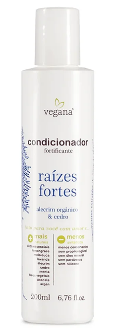 O Condicionador Fortificante, da WNF Vegana, é rico em ativos botânicos, sem ingredientes de origem animal e livre de petrolatos, silicones e lauril sulfato de sódio. Atua no fortalecimento da estrutura dos fios, do seu nascimento ao pleno desenvolvimento, protegendo-os de fatores externos, como tinturas químicas, poluição, exposição excessiva ao sol e dieta pobre em nutrientes. Para isso, faz uso da força combinada do Extrato de Alecrim, rico em propriedades antifúngicas combatentes de queda capilar, caspa e seborreia, e do Óleo Essencial de Cedro da Virgínia, que atua diretamente na raíz do cabelo, promovendo oxigenação e estimulando o crescimento saudável dos fios. Sua base hidratante é formada pelos óleos vegetais de Argan e Abacate, que proporcionam inúmeros benefícios como nutrição avançada, condicionamento equilibrado, aumento da elasticidade, além de maciez e brilho. Este Condicionador ainda é enriquecido com óleos essenciais de Tea Tree e Lavanda, destacados pelas suas poderosas atividades antissépticas, regeneradoras e cicatrizantes; e Capim Limão, catalisador da microcirculação no couro cabeludo e promotor de uma fragrância leve, refrescante e herbal-cítrica.