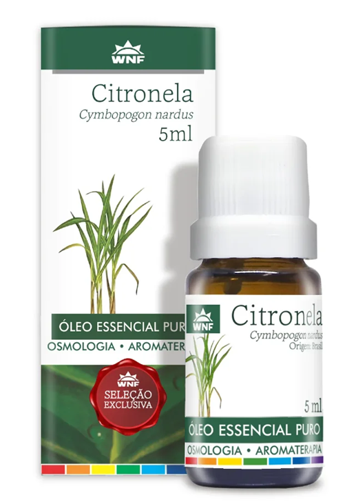 O Óleo Essencial de Citronela, da WNF, é 100% puro e natural, derivado de uma planta nativa da Ásia. Possui aroma herbáceo-cítrico fresco. É versátil, sendo útil como repelente (contra pernilongos, baratas, pulgas etc) e no combate de pragas agrícolas e até chulé e caspa no couro cabeludo. Os principais componentes do óleo de citronela, citronelol e citronelal, possuem ação analgésica e anti-inflamatória, útil no alívio de dores diversas, conforme mostram estudos científicos.
